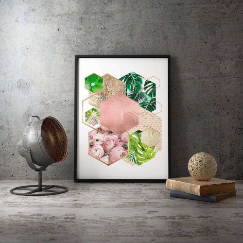 Hexagon 001 Gold Rose Tropical Abstract Canvas