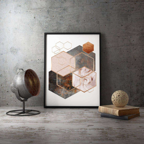 Hexagon 001 Rose Gold Copper Abstract Canvas