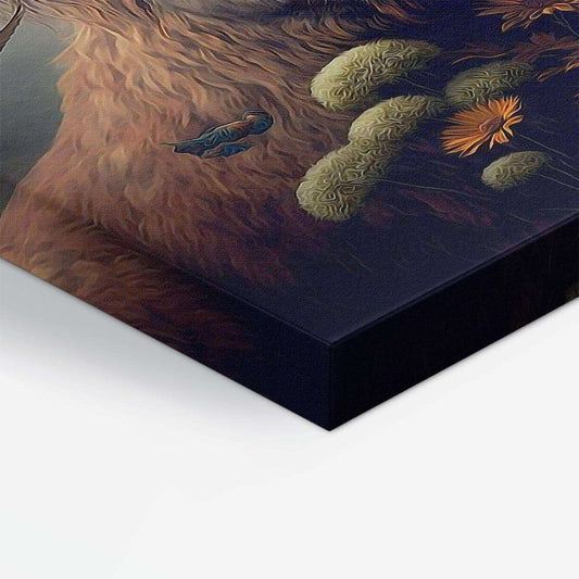 Bull Cow Floral Still Life Portrait Animal Canvas