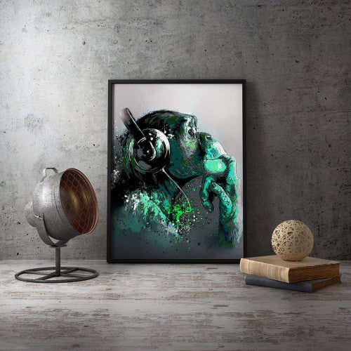 Graffiti Chimp Monkey Headphones Aqua Canvas