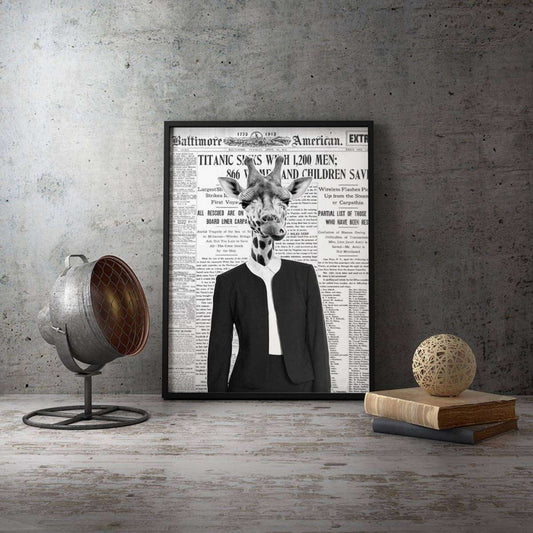 Giraffe Lady Old Newspaper Animal Canvas