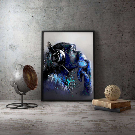 Graffiti Chimp Monkey Headphones Blue Canvas