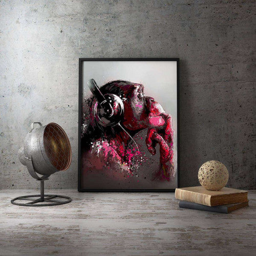 Graffiti Chimp Monkey Headphones Pink Canvas