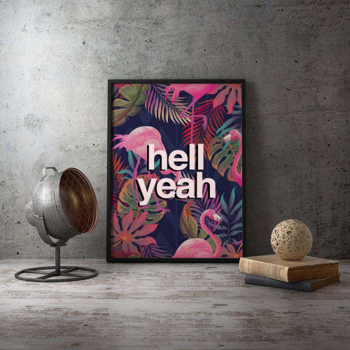 Hell Yeah Tropical Flamingo Typography Canvas