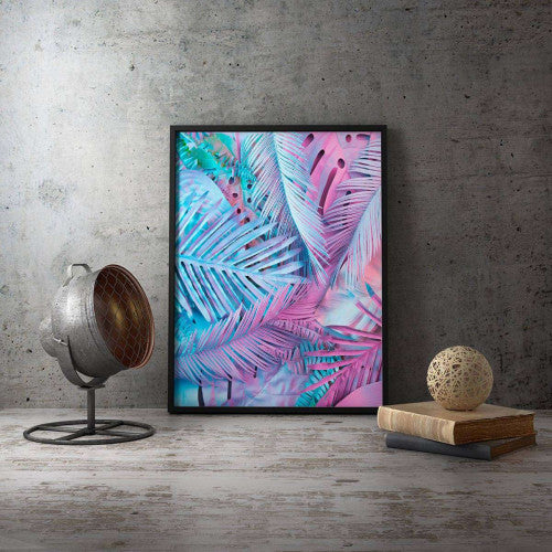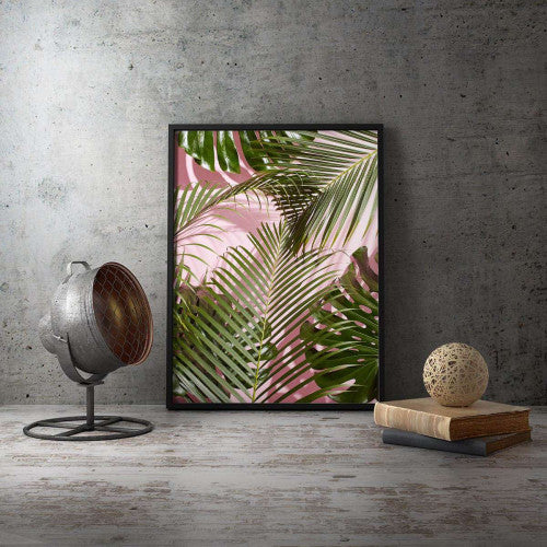 Tropical Leaves Rose Gold Triangles Geometrical Canvas