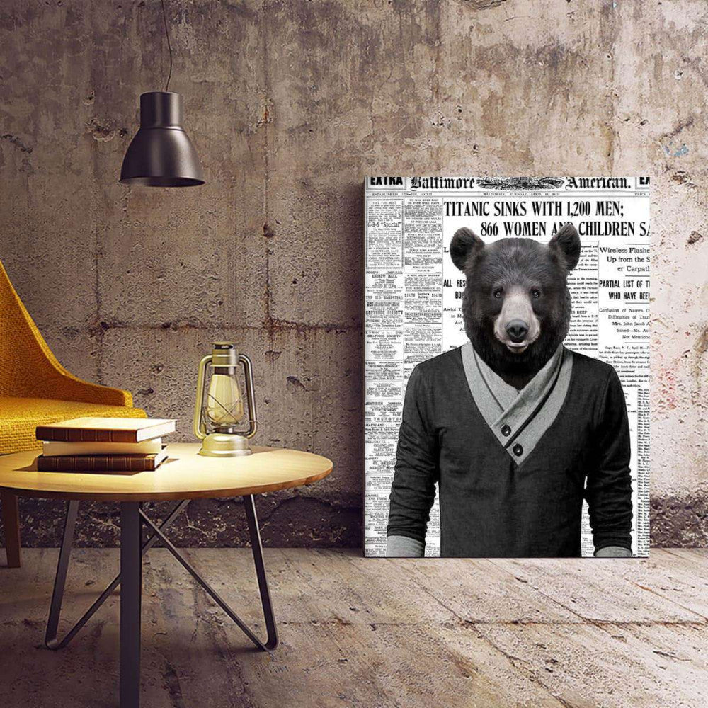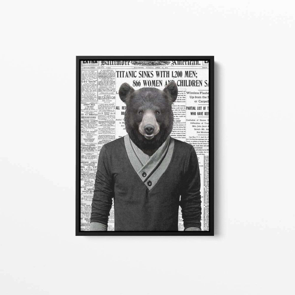 Bring an element of fun and sophistication to your decor with the "Bear Dude Old Newspaper Animal Canvas"—a conversation-starting masterpiece with timeless appeal.