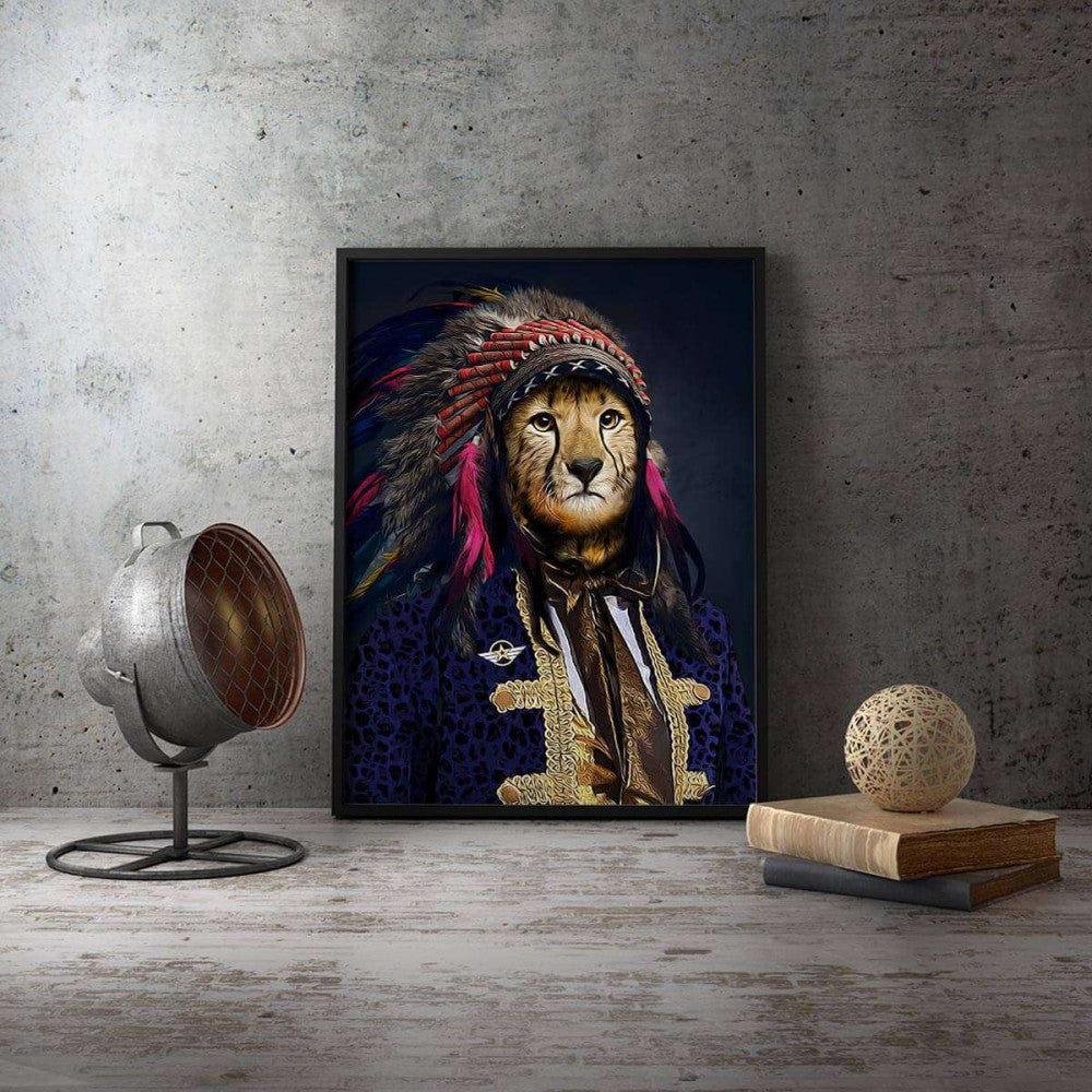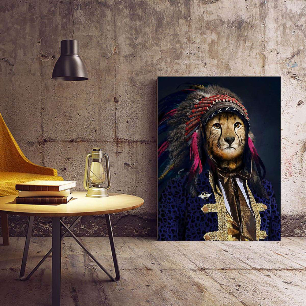 Bring a bold fusion of nature and military style to your space with the Cherokee Cheetah Animal Military Canvas from RockSaltPrints.