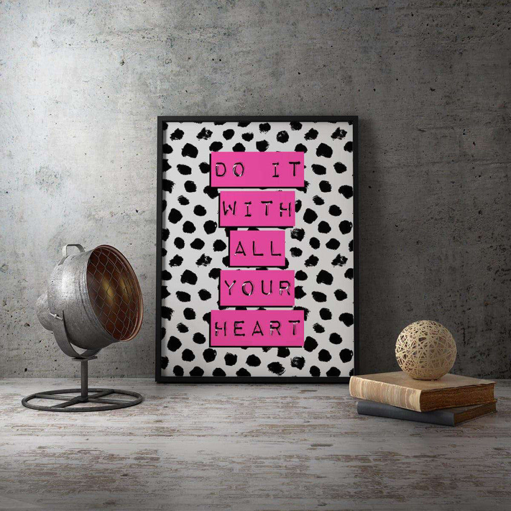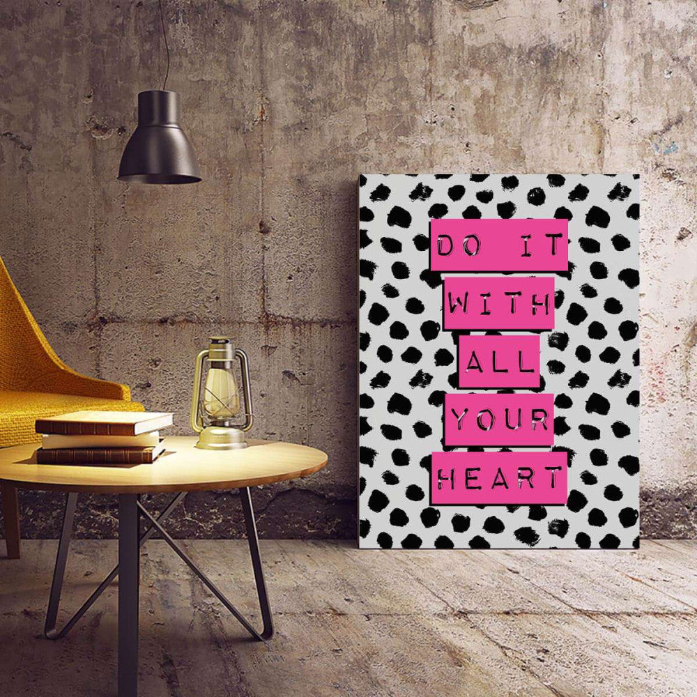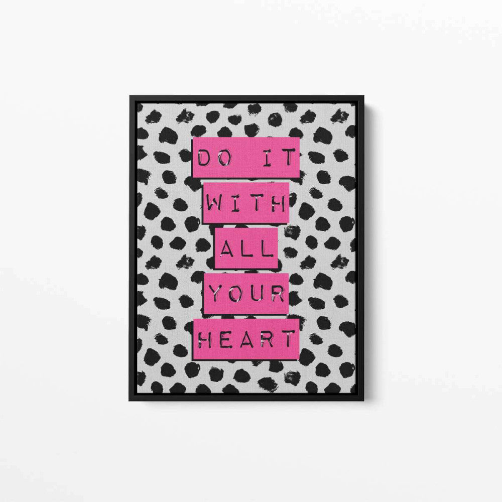 Inspire your space with the Do It With All Your Heart Grey Pink Typography Canvas, a beautiful blend of style and motivation to keep you moving forward with passion!
