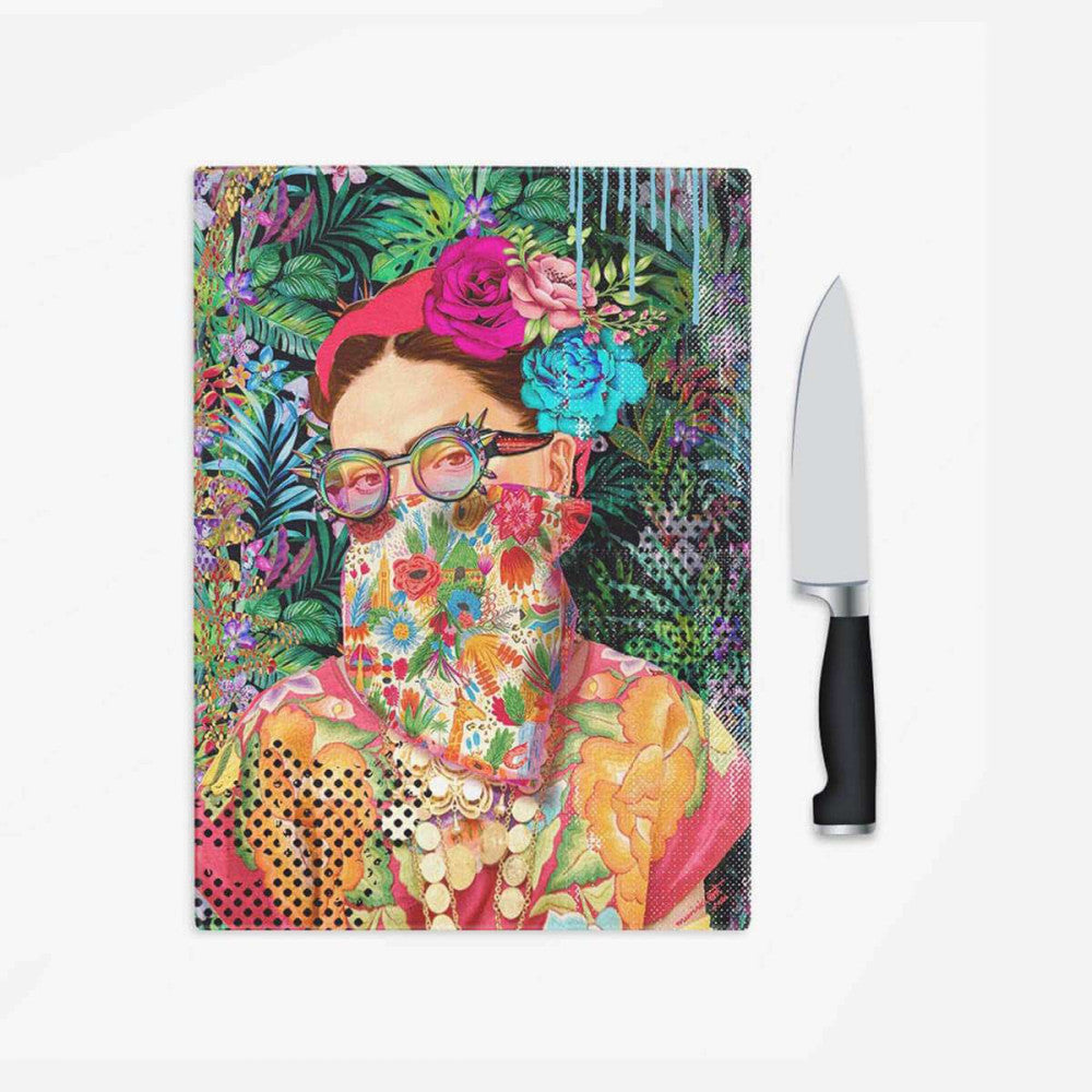 Celebrate the iconic spirit and vibrant art of Frida Kahlo with the Frida Kahlo Tropical Chopping Board from RockSaltPrints. Featuring a bold and colorful design inspired by her unique style and love for nature, this chopping board adds a touch of artistic flair and personality to your kitchen.