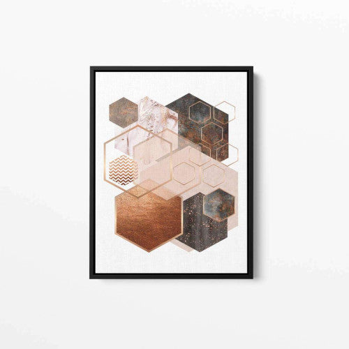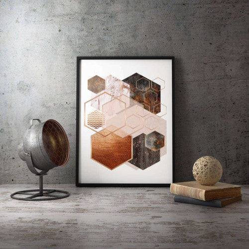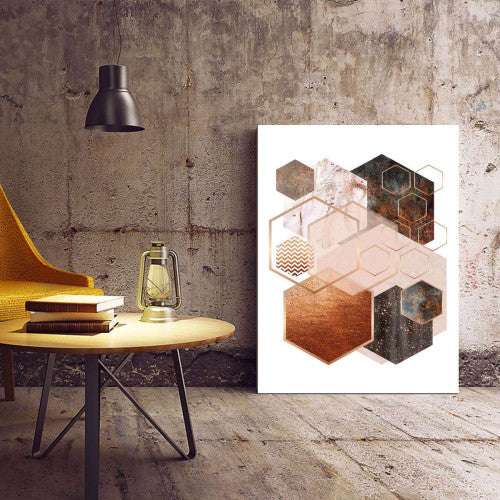 Redefine your interiors with the Hexagon 001 Rose Gold Copper Abstract Canvas, a timeless blend of geometry and luxury that transforms your space into an artistic haven.