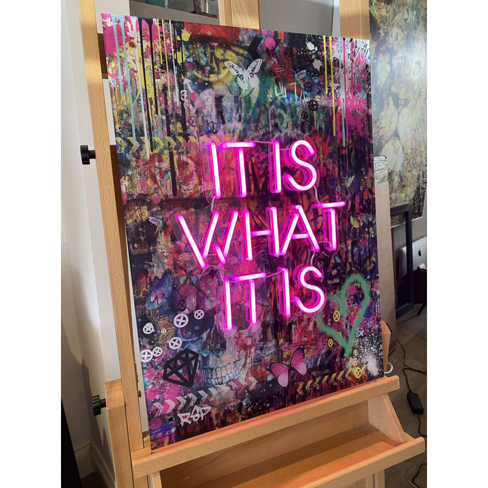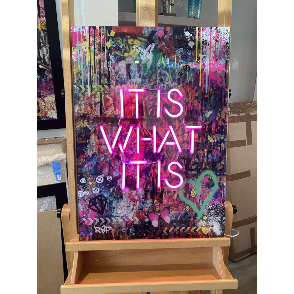 It Is What It Is Graffiti Acrylic Glass Art with Neon LED Sign