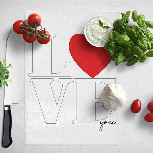 Bring a touch of warmth and affection to your kitchen with the Love You Typography Chopping Board from RockSaltPrints. Featuring a bold and elegant typography design that spells out "Love You," this chopping board is the perfect way to add a heartfelt message to your culinary space.