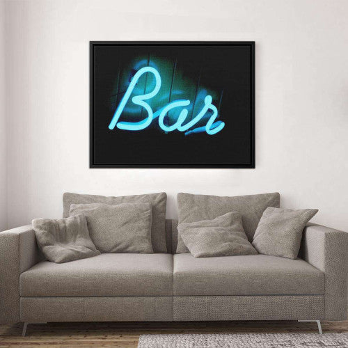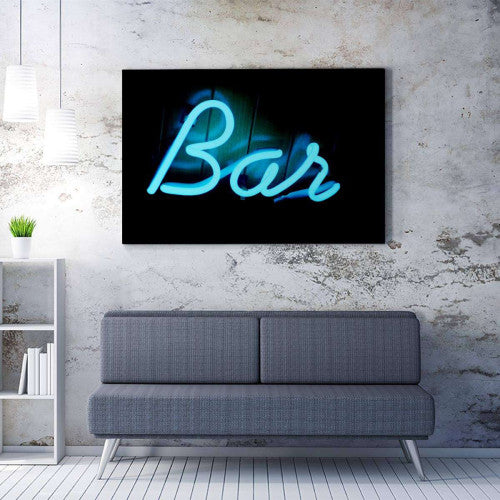Set the tone for a lively and stylish atmosphere with the "Neon Bar Blue Sign Canvas", a perfect addition for those who love the energy and vibe of neon lights and urban design.