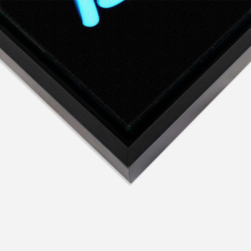 - Striking Neon Blue Design: The electric blue neon effect gives the artwork a modern, glowing appeal, mimicking the look of a neon sign for a contemporary, urban vibe.