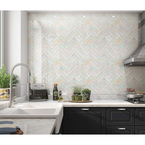 Add subtle sophistication and timeless style to your space with Pearl Herringbone. This design features a refined herringbone pattern in soft, pearlescent tones, creating an elegant and classic look that enhances any room with its understated beauty.