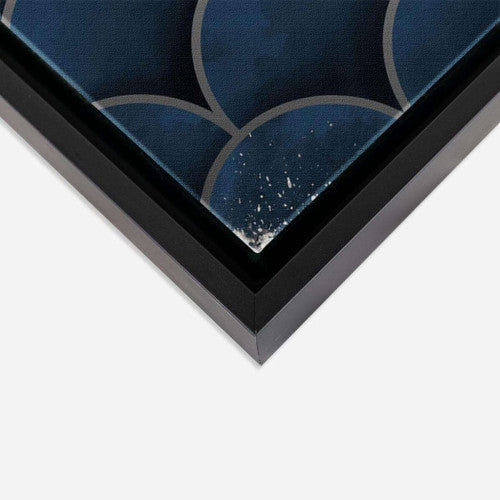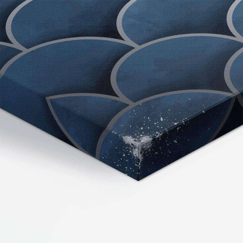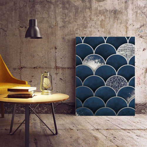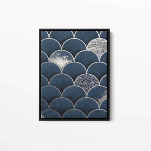 Transform your space with the "Silver Grey Navy Moroccan Abstract Canvas" by RockSaltPrints. This stunning artwork blends intricate Moroccan-inspired patterns with abstract shapes, using a sophisticated color palette of silver grey and navy to create a modern, exotic vibe.