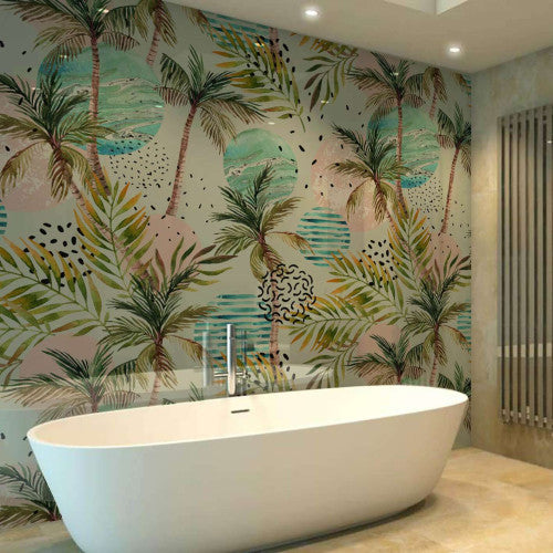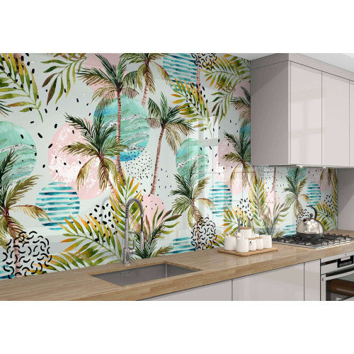 " Tropical Palm Pastel" brings a serene and refreshing vibe with its delicate pastel tones and tropical palm designs. This pattern exudes calm sophistication, perfect for enhancing interiors with a light, airy touch.
